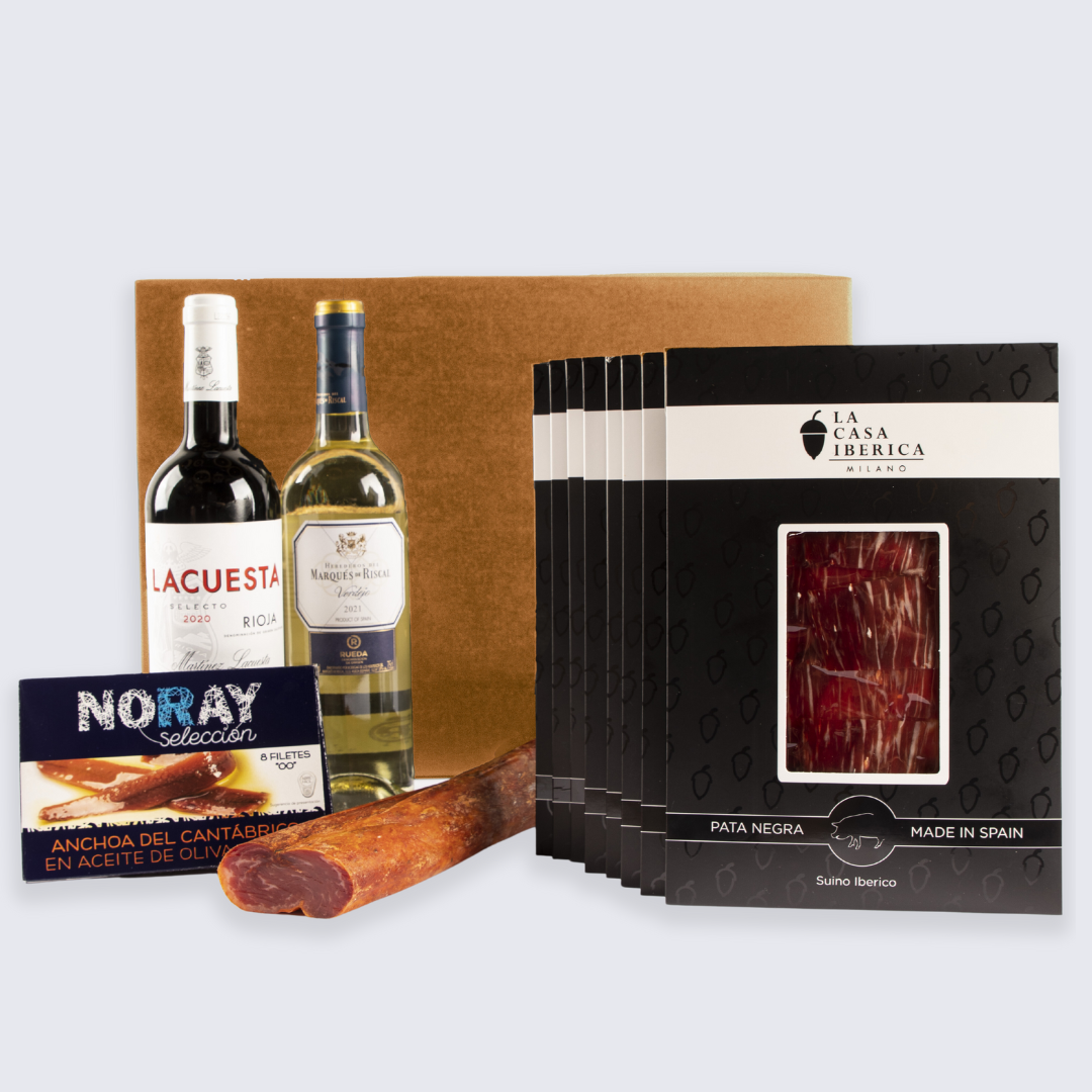 La nostra esclusiva scatola degustazione offre una selezione di prodotti iberici di alta qualità, rendendola il regalo ideale per tutti gli amanti del sapore autentico e raffinato.