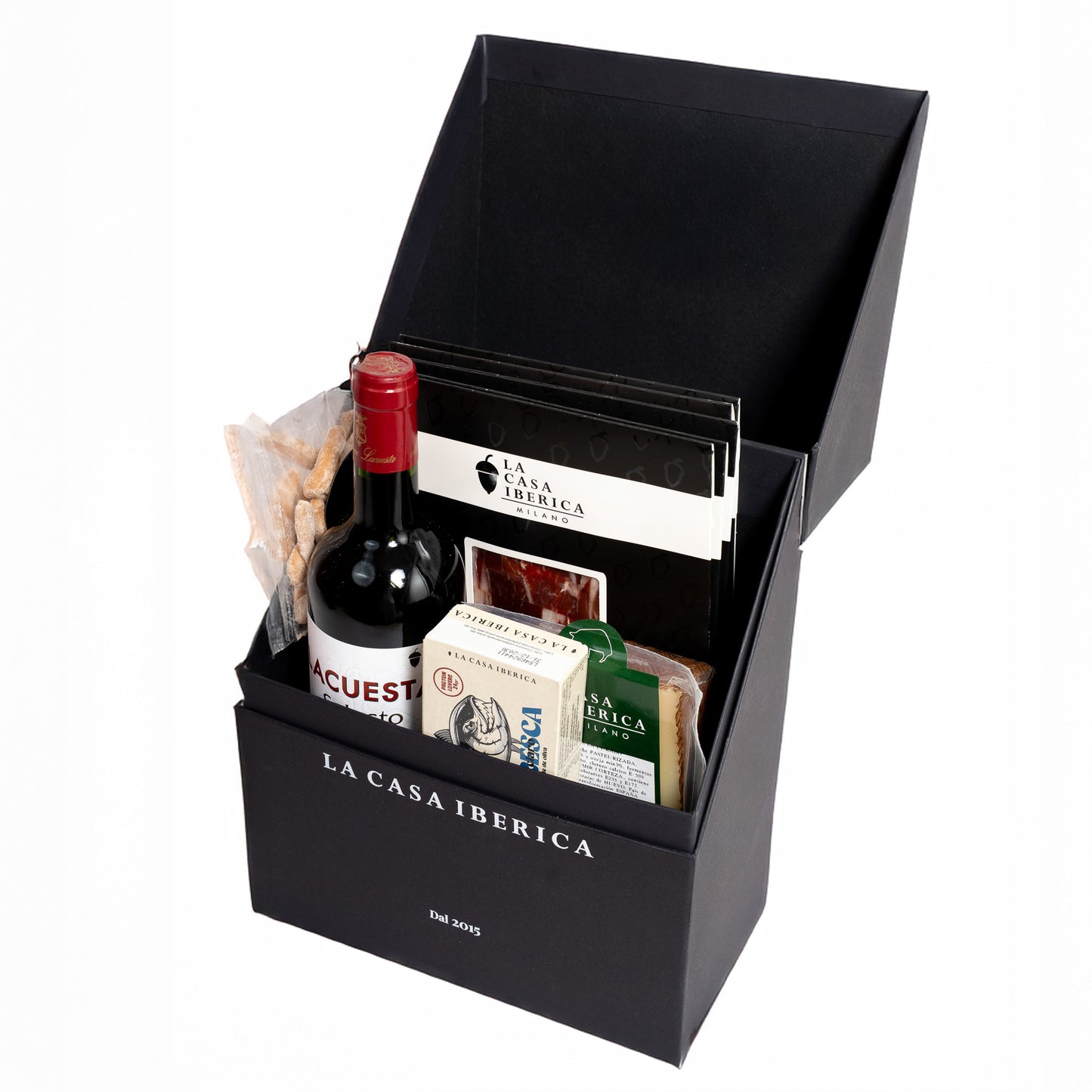 La Scatola La Casa Ibérica racchiude una selezione esclusiva di prelibatezze iberiche, pensata per chi ama la gastronomia di alta qualità e i sapori autentici della tradizione spagnola.