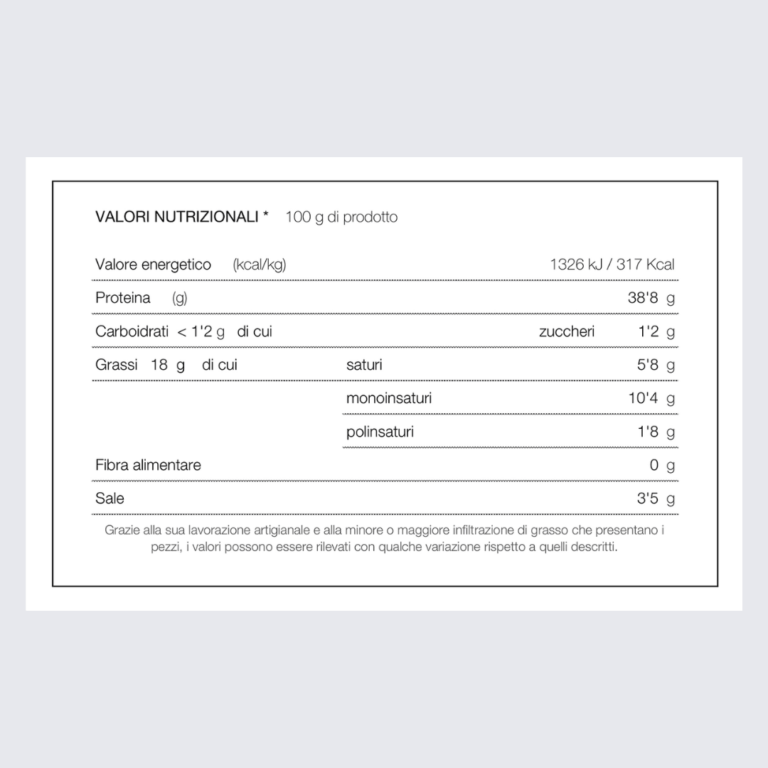Si consiglia di prendere il lomo dal frigo 1 ora prima di servirlo per poterne apprezzare a pieno l’aroma e il sapore.
